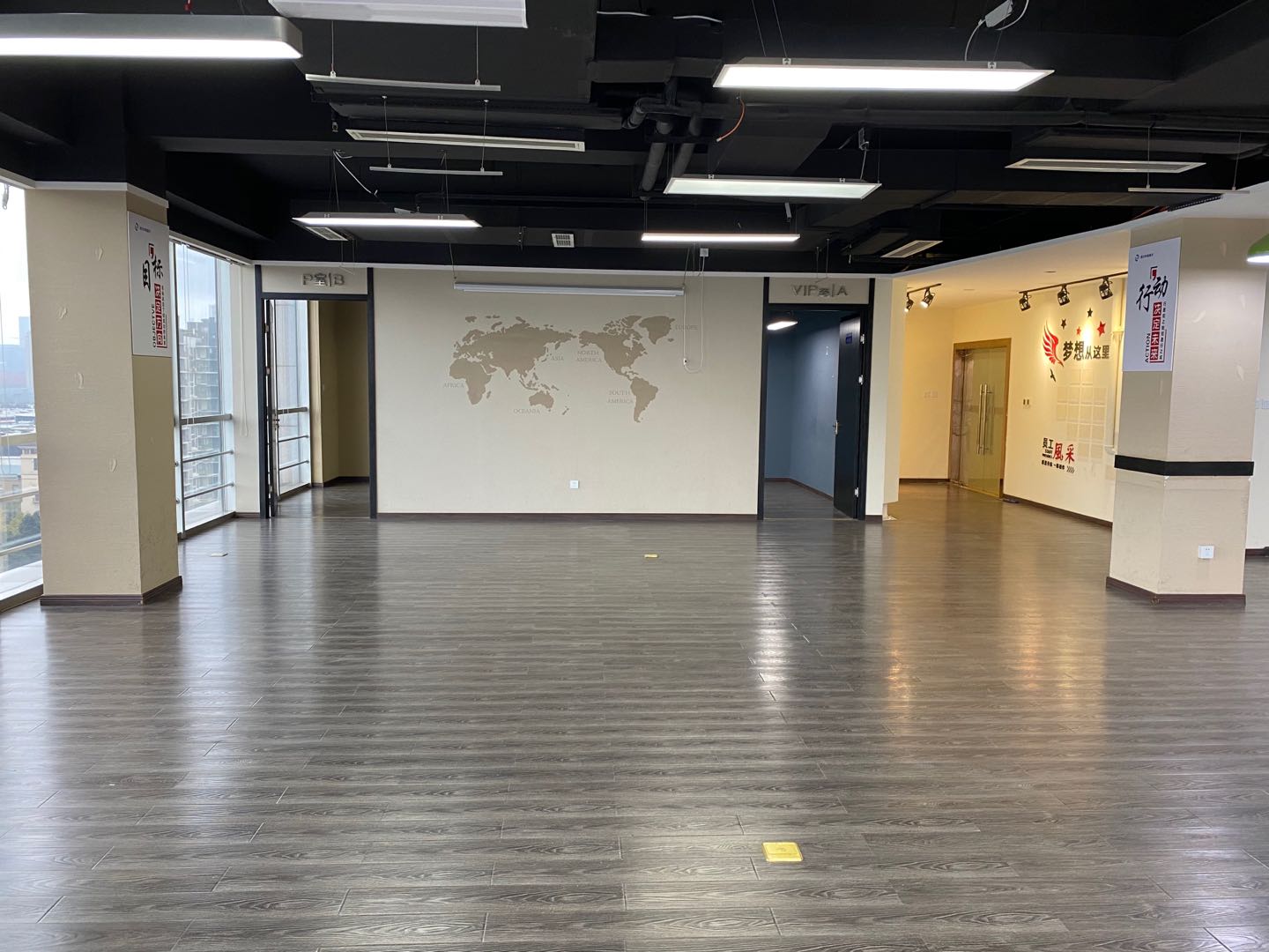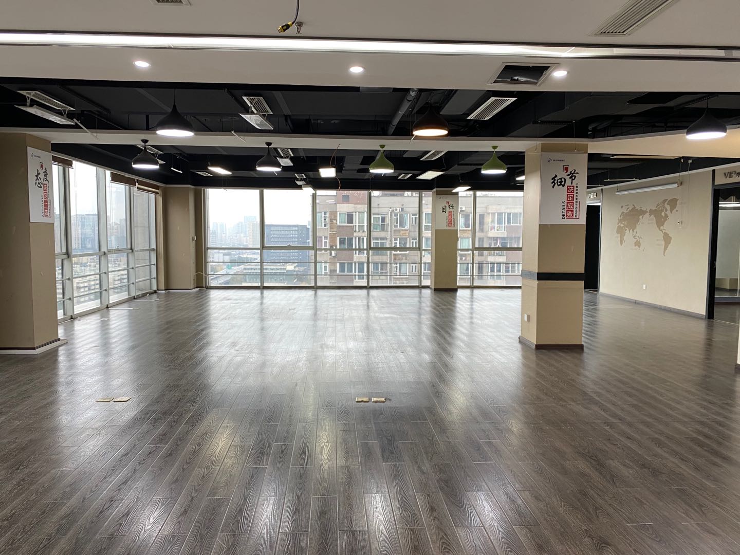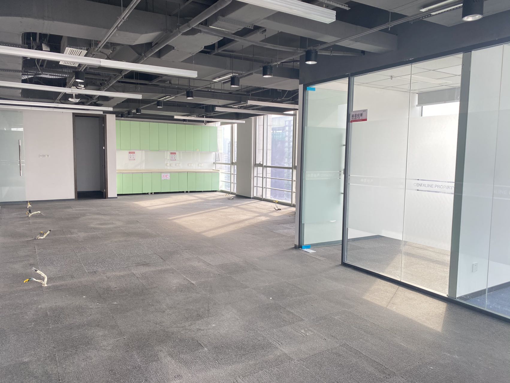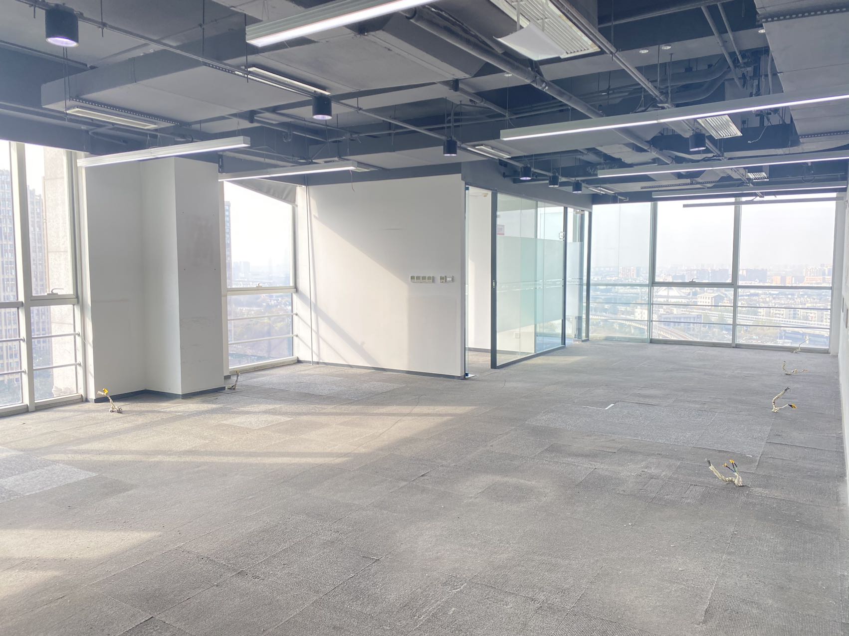 交付标准:精装修空房,5个办公室,1个卫生间,1个长条房。
