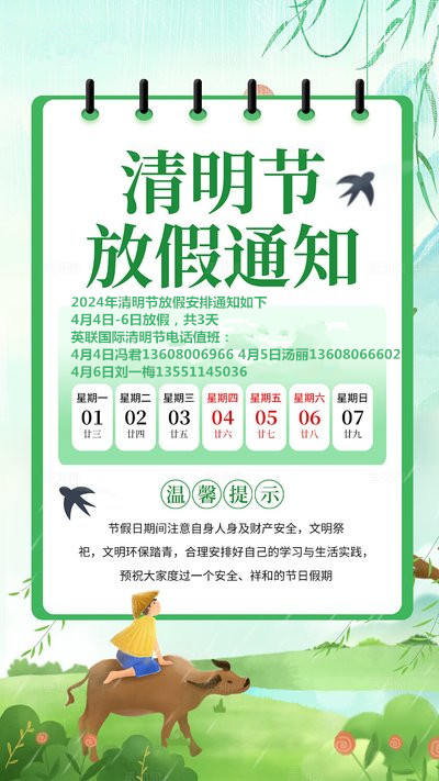 英联国际清明节放假通知