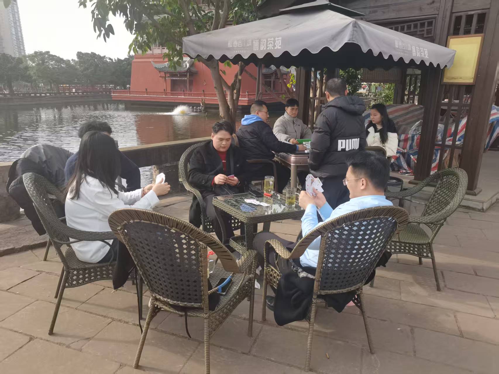 下午,团队成员们自由活动。大家漫步在古镇的街道上,欣赏着古老的建筑和传统的手工艺品。有的成员走进了茶馆,坐下来喝一杯清茶,打一打麻将,感受着古镇的悠闲氛围;有的成员则购买了一些纪念品,准备带回去送给亲朋好友。